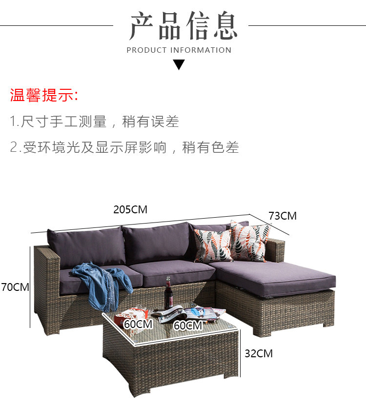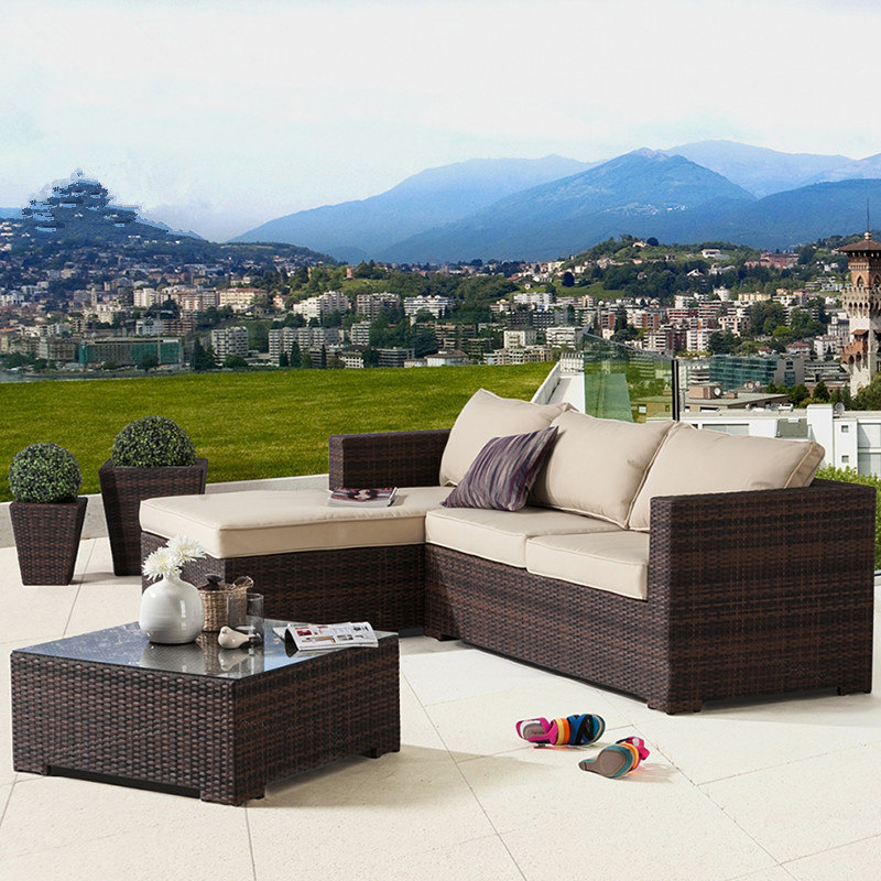 Открытый отдых на открытом воздухе диван диван Комбинированный сад трехперрантный ротан