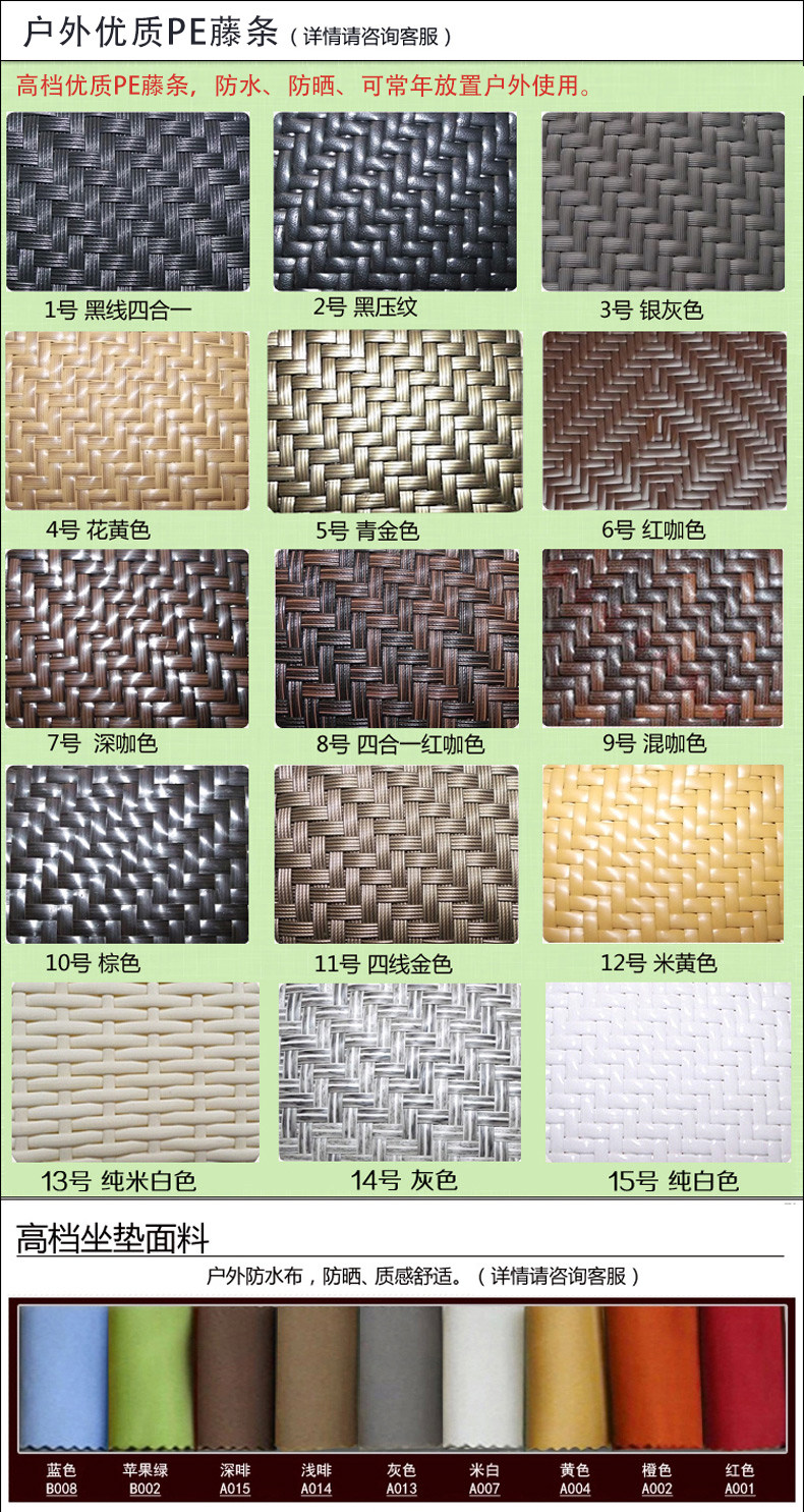Материал изделия | 1. Высококачественный металлический материал, экологически чистый роттан, продукт аутентификации SGS, гладкий, гибкий, хороший анти -UV, анти- 2. Workman: чисто ручные, новые стили, элегантность высокой. 3. Особенности: обеспечение качества продукта производителя, натуральный, здоровый и может быть приобретен с уверенностью. | |||