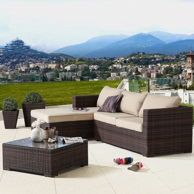 Открытый отдых на открытом воздухе диван диван Комбинированный сад трехперрантный ротан