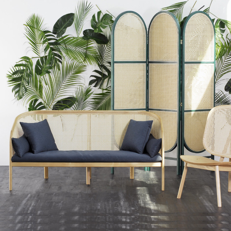 Японский стиль ротанного дивана с тремя личности с твердым двойным диваном Стул проста в маленькой квартире