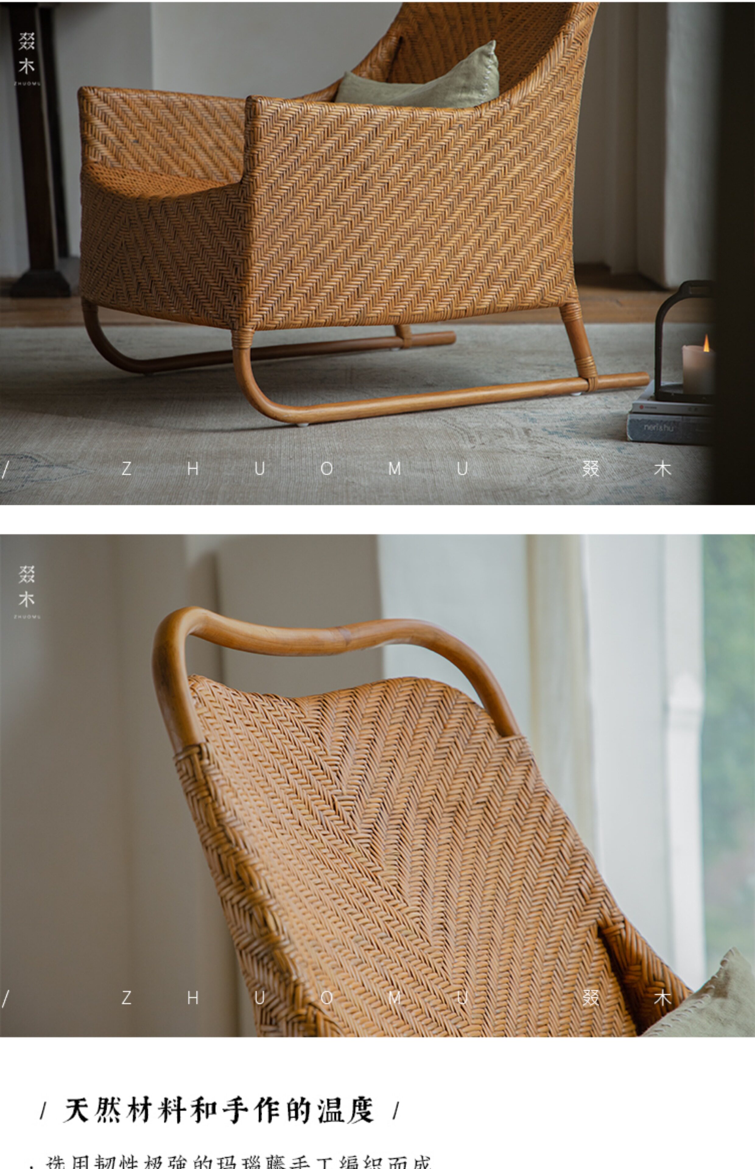 叕木 | Юго -восточная азиатская ротанская искусство/ретро -стиль индонезийский дизайнерский рисунок, повседневный ротан, стул B & B балкон диван, одиночный стул
