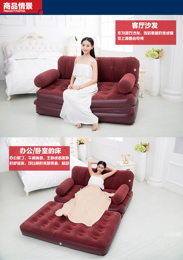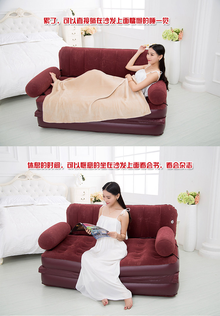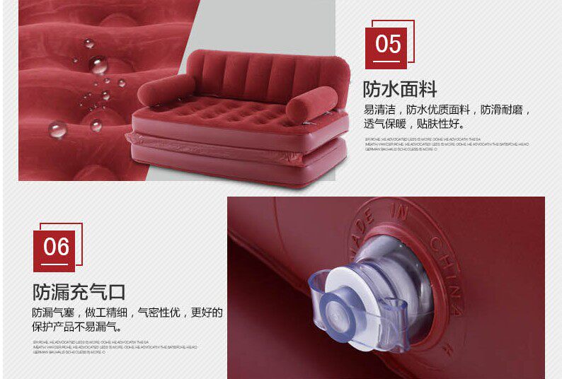 Сильная практичность: четыре функции: диван, задняя кровать, кресло для отдыха и двуспальная кроватьСвязанный кровать дивана соединен ПВХ посередине и открывается в двуспальную кровать,Loire 300 кг,Два увеличенных выхлопных порта, которые могут быть быстро исчерпаныСильное воздействие, эксперименты по строгому устойчивости давления.