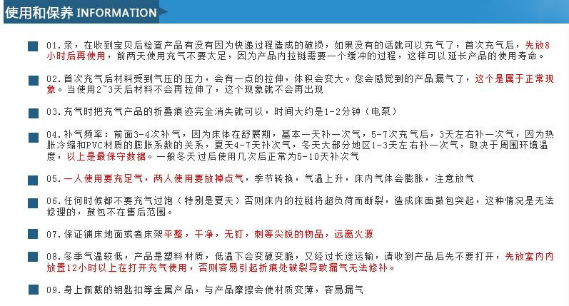 Примечание:Из -за характеристик надувных продуктов размер будет нормальным.Используйте в среде выше 0 градусов, температура,