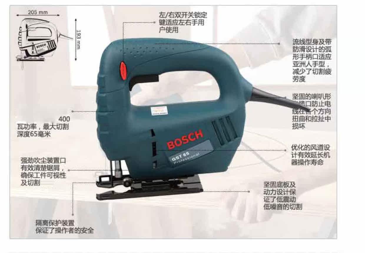 Boschi Sase GST65/GST65E деревообрабатывающая бензопинка Электрическая инструментальная машина для домашнего резки может регулировать скорость