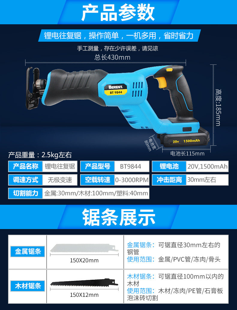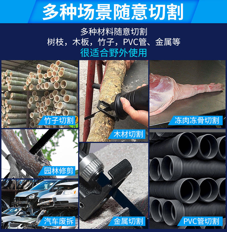 Электрическая перезаряжаемая универсальная портативная бензопила, литиевые батарейки, лопасть, 20v