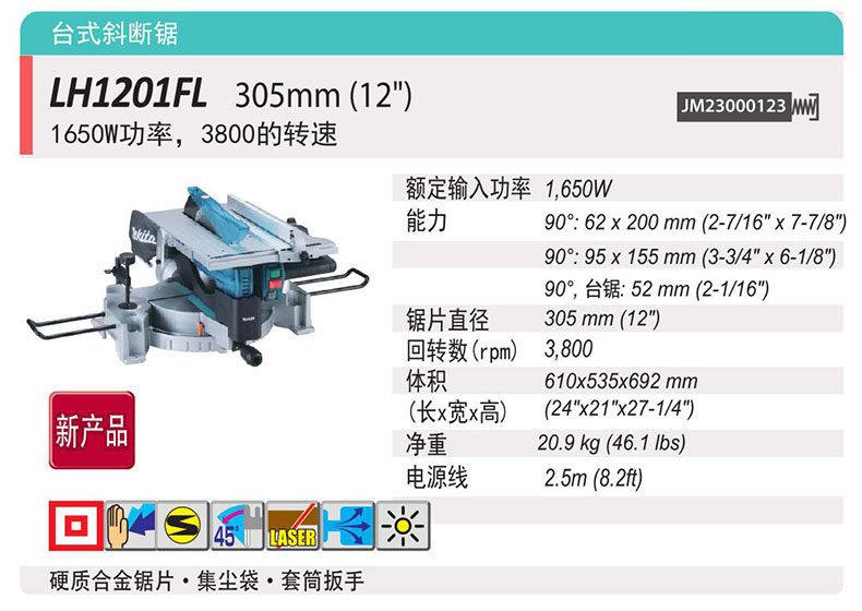 Япония Makita Makada LH201FL Платформа Диагональный межалюминовый сплав сплав сплав Пластиковый сталь стальной дерево