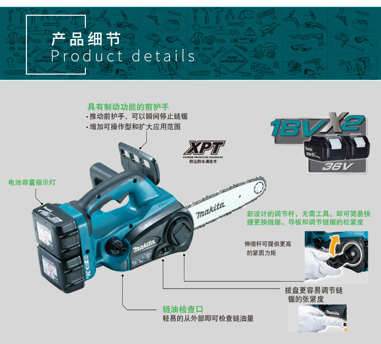 Makada Cyber Chain Saw Duc252rm2/z Зарядка с низкой новой литиевой батареей Cycs Simpage Зарядка деревянная цепь пила 36 В