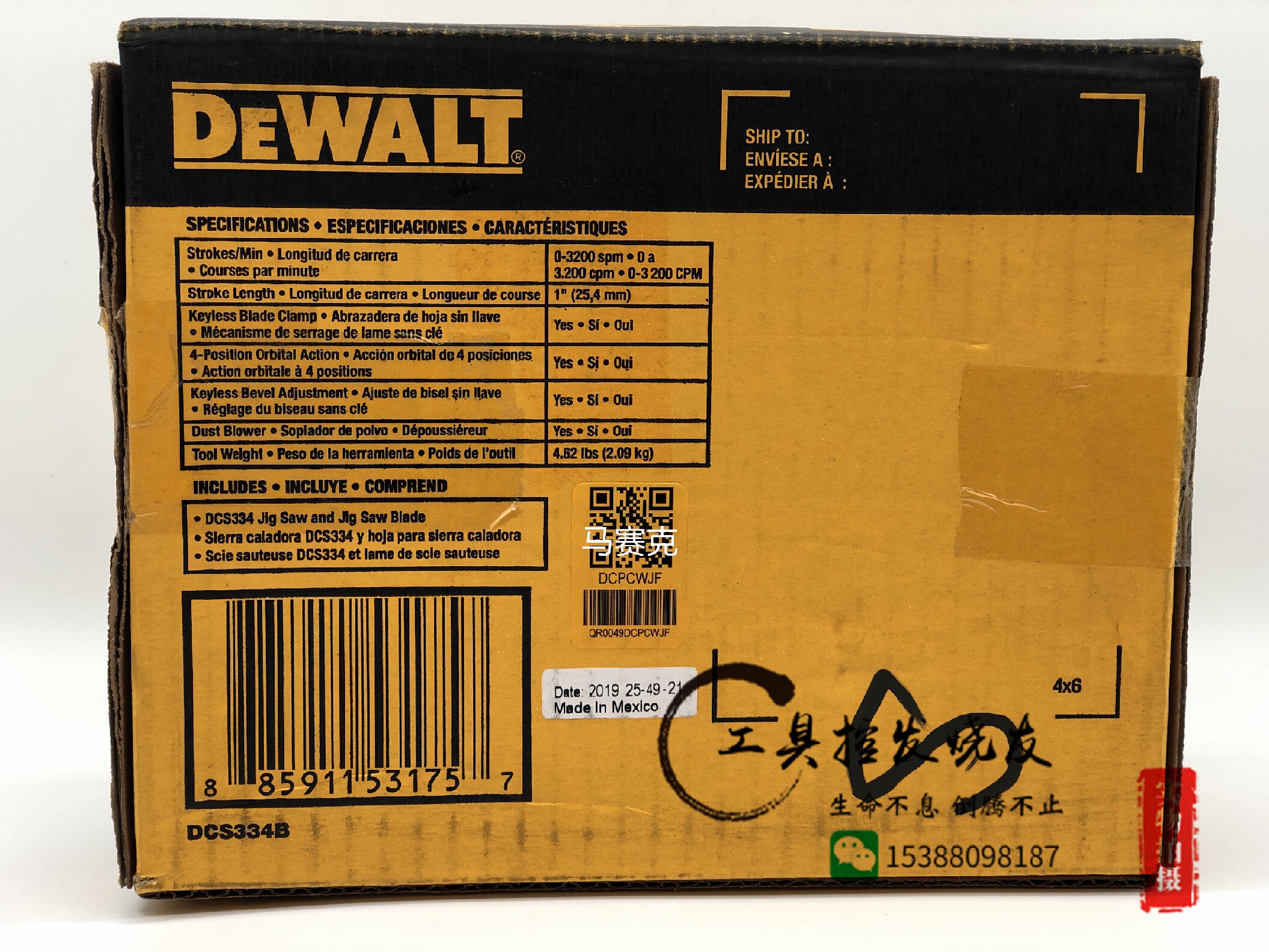 Мексиканское производство DeWalt DCS334B 20 В 20 В литиевая безмолвная кривая 331 Версия обновления