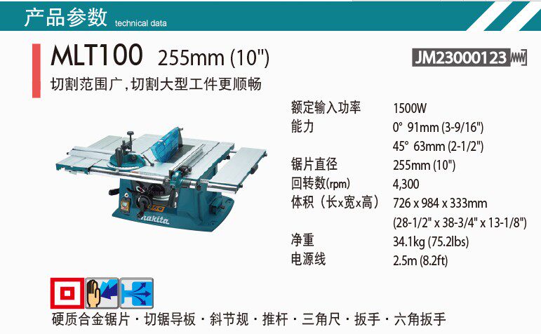 Makita Makita 10 -INCH TABLE PORTABLE WOODWORKING TABLE SAW SAW Многофункциональная маленькая платформа MLT100
