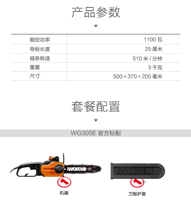 Wicker держит небольшую лесозаготовительную пилу WG305E HOME Высокоэлектрическая цепная сеть -цепь электрический инструмент