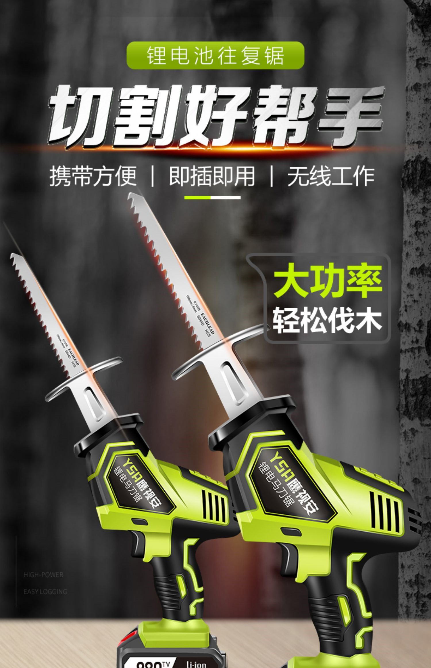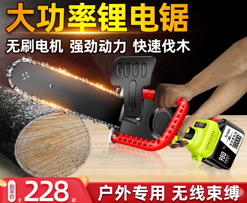 Перезаряжаемые беспроводные литиевые батарейки, деревянная электрическая бензопила, высокая мощность