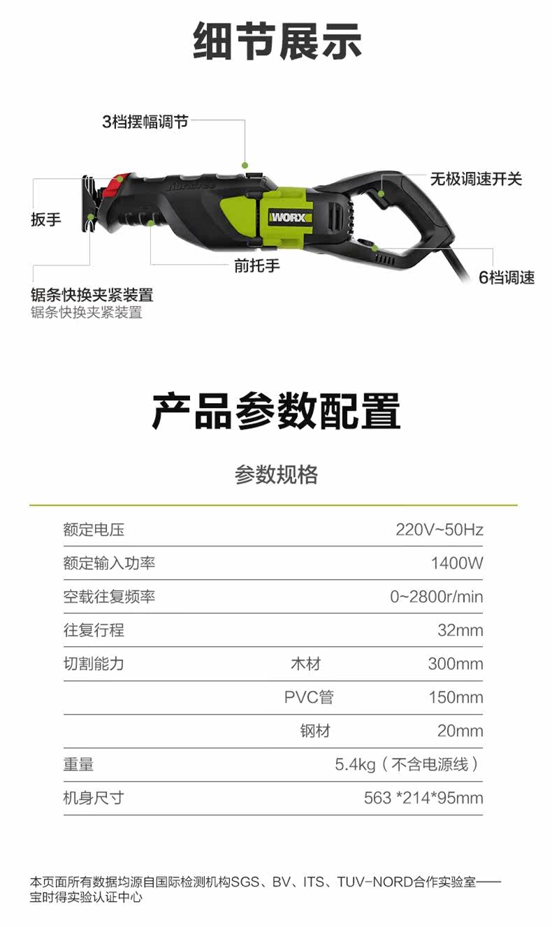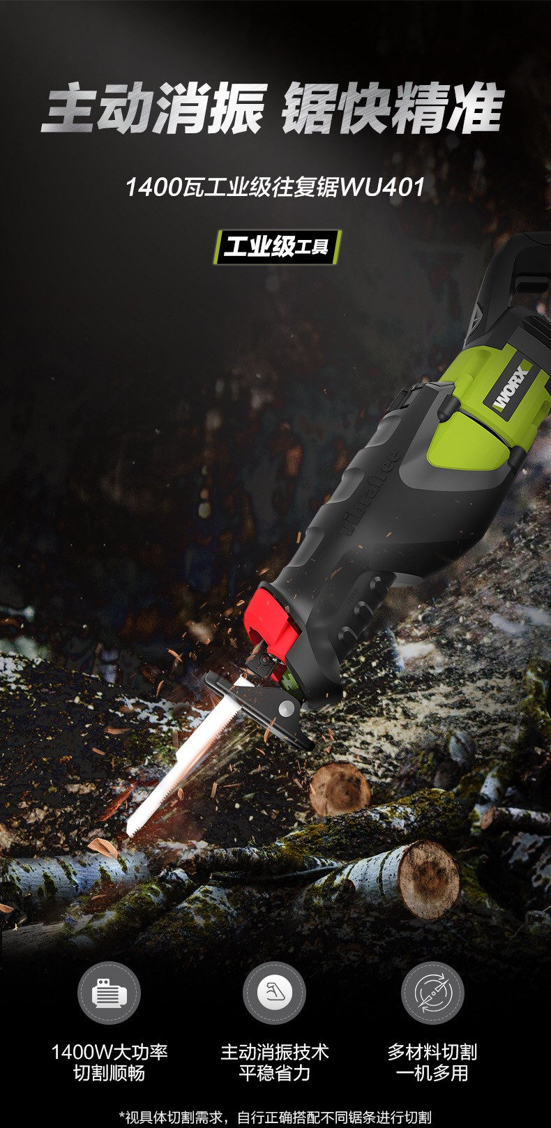 Worx wu401 1400 Вт -см. Конский нож пилы режущий пластик, дерево, металл