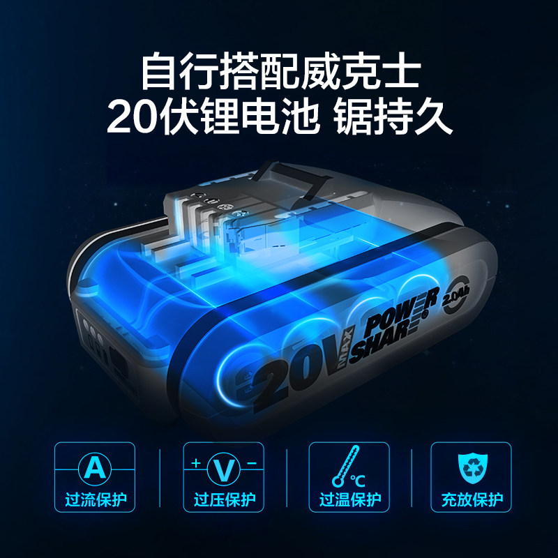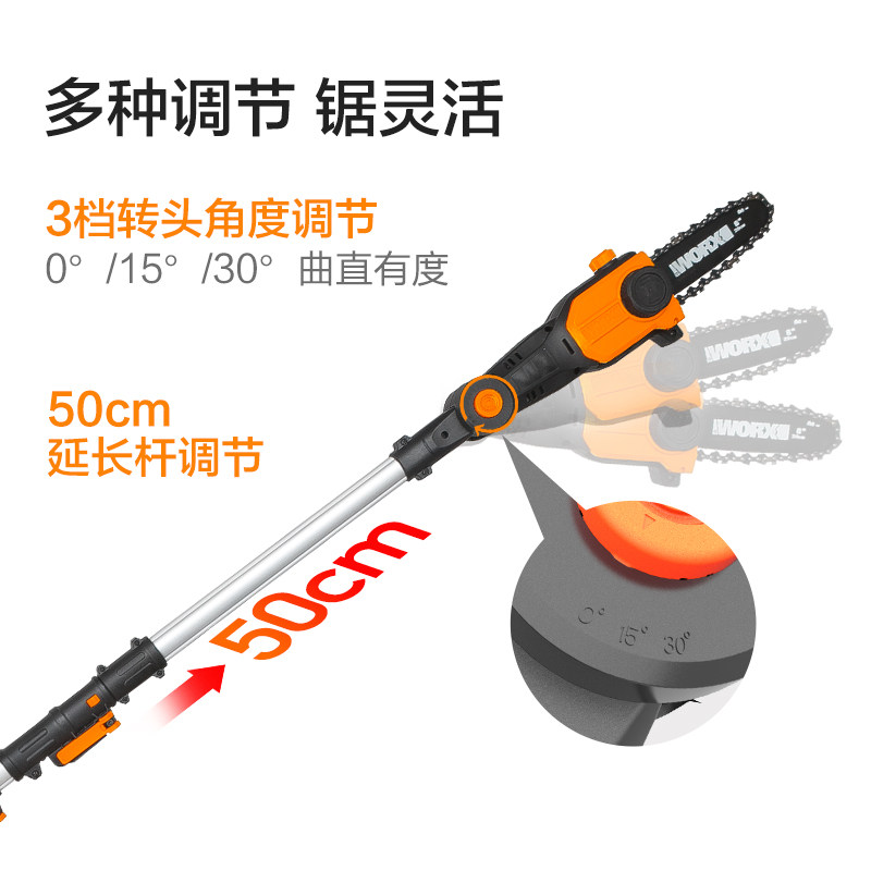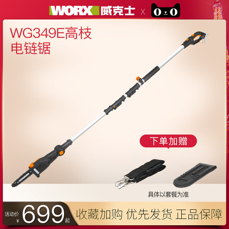 Литий-ионная электрическая цепная пила с высокой веткой Wicks WG349E, перезаряжаемая мощная ручная пила для валки деревьев на открытом воздухе
