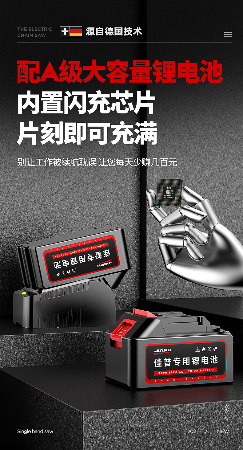 Бензопила, портативные перезаряжаемые электрические литиевые батарейки с зарядкой, высокая мощность