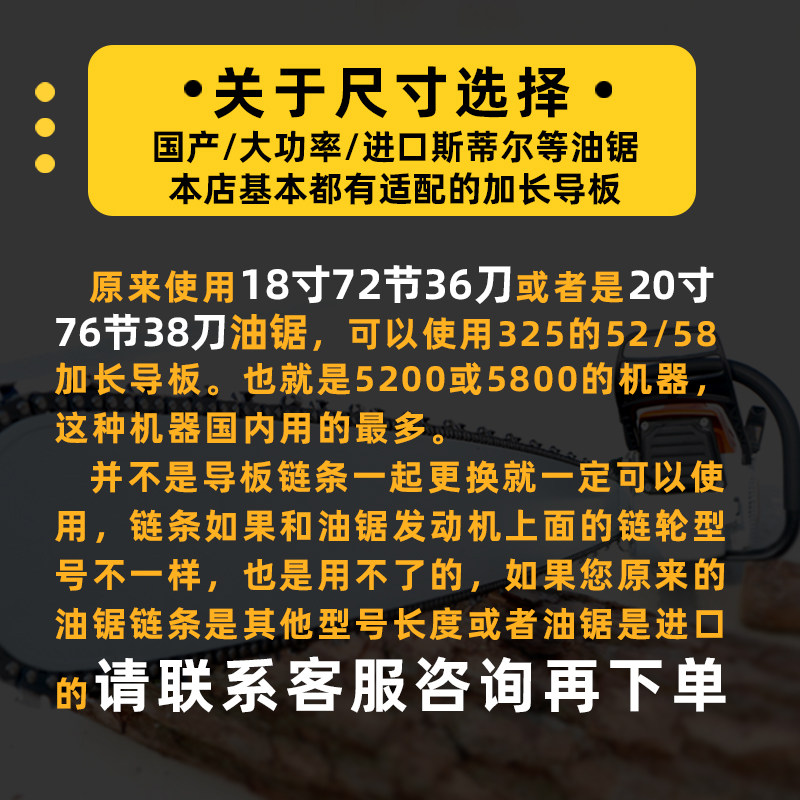 - 325-28-дюймовый 77 см с направляющим колесом (52/58 масляная пила)