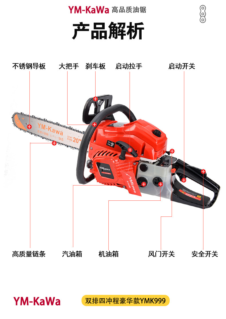 Оригинальная Япония Импортированная четырехпроизводственная стрельба с высокой силой пилы легко, начинающая домашняя бензиновая пила