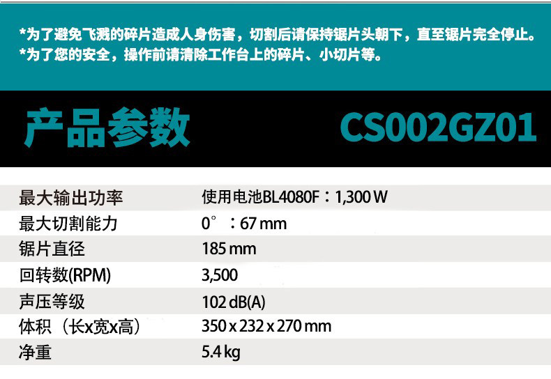Подлинная макита импортированная литиевая мощность бесщеточная 40 В зарядка металлическая машина для резки CS002GZ01