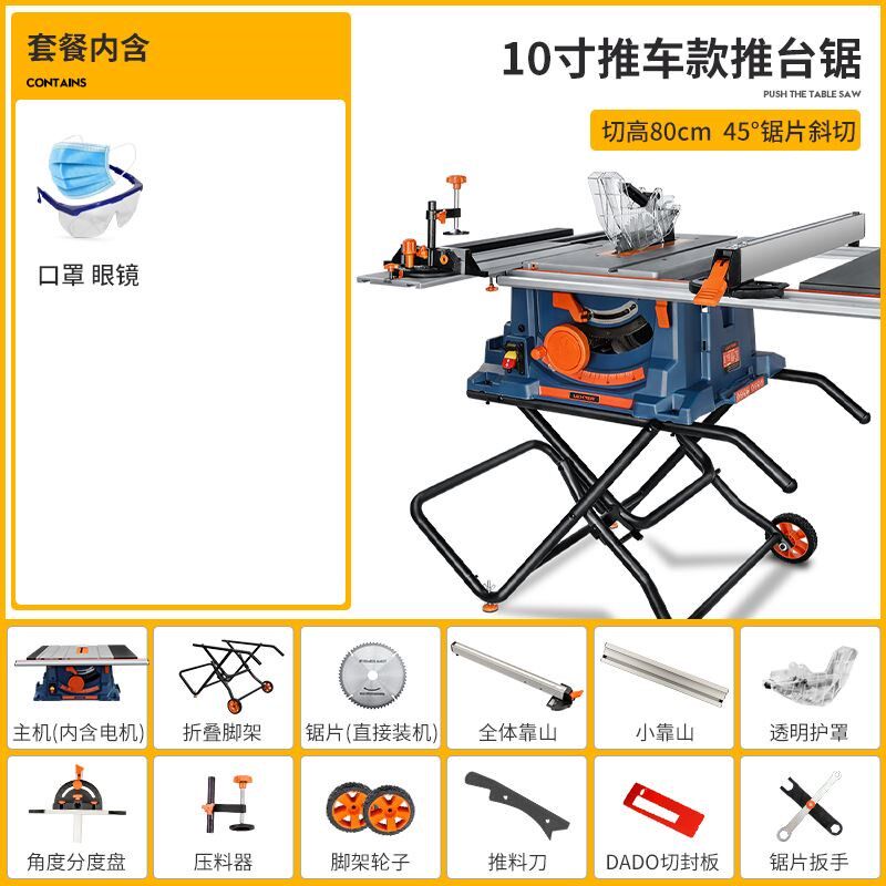 - 10-дюймовая настольная пила с низкоскоростной пилой + деревянная пила с 80 зубцами