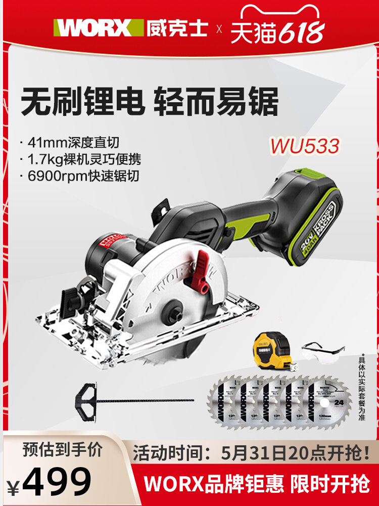 Плетеная бесщеточная бензопиля WU533 Многофункциональные литиевые электрические круговые пилы Saw Pustry -Crade Sawwu535