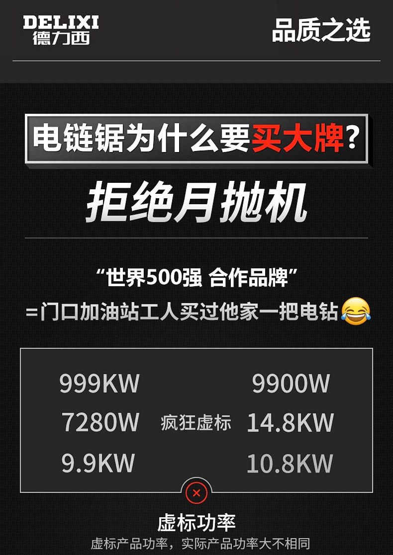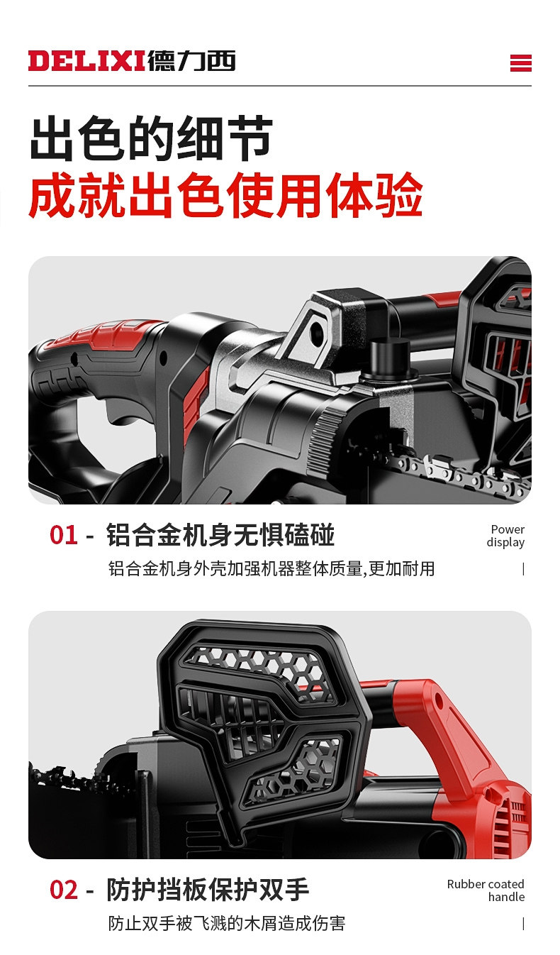 Delixi Faceilitariacs распиливает небольшую ручной плотники, разрезая дрова и режущая цепная пила с электрическим пил