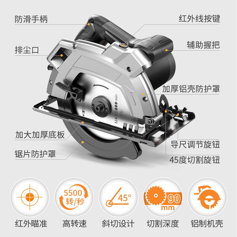 - Алюминиевая модель модели 7-дюймовой электро-циркулярной модели можно оснащено стандартным (без пилы).