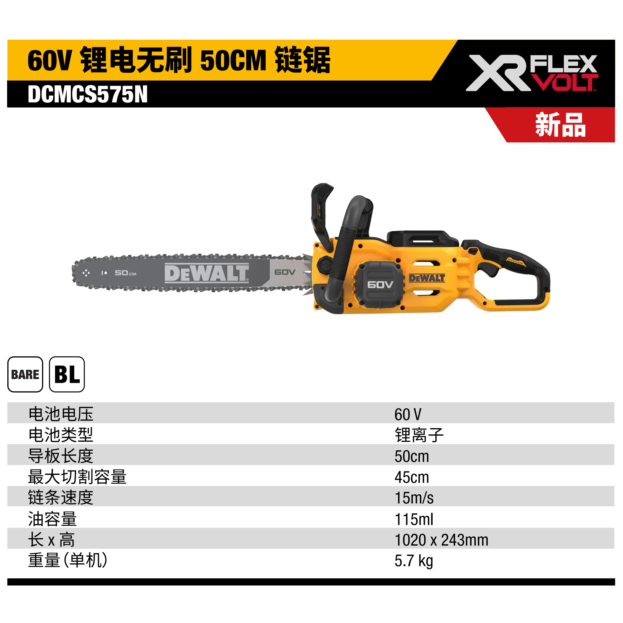 Подлинное DeWalt DCMCS575N Гибкое напряжение 50 см бесщеточной бесщеточной 54 В.