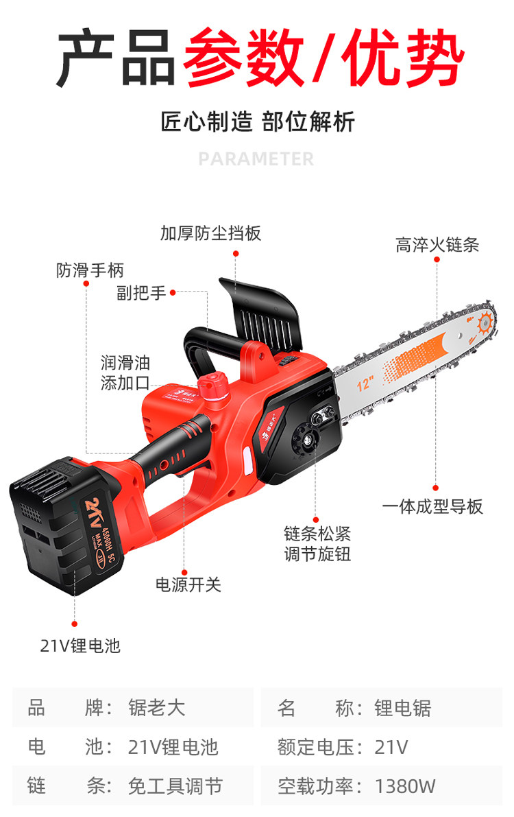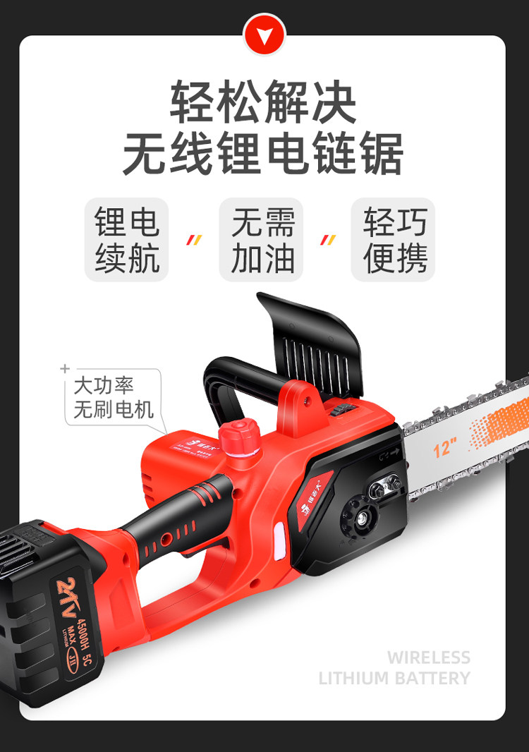 锯老大 Перезаряжаемая бензопила с зарядкой, портативные литиевые батарейки, цепь, высокая мощность