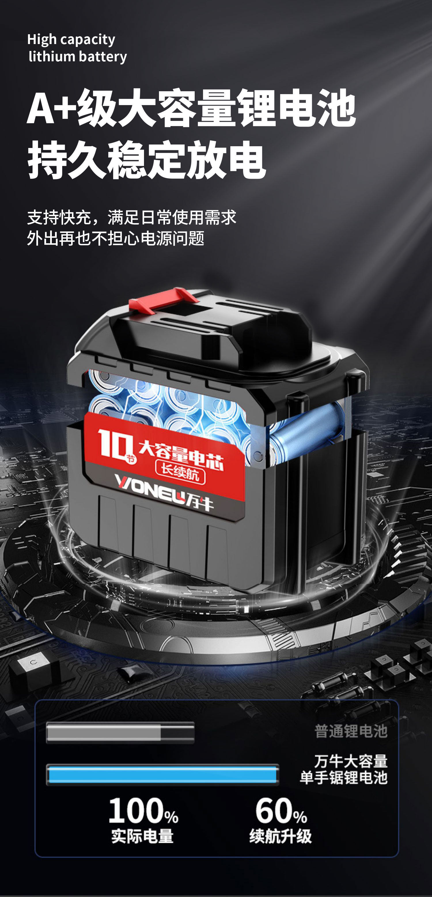 Бензопила, портативные вместительные и большые электрические перезаряжаемые литиевые батарейки с зарядкой