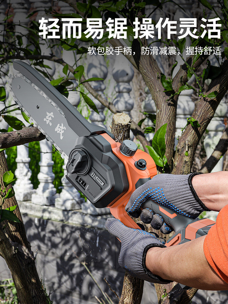 Портативная бензопила с зарядкой, перезаряжаемые электрические литиевые батарейки, фонарь, высокая мощность