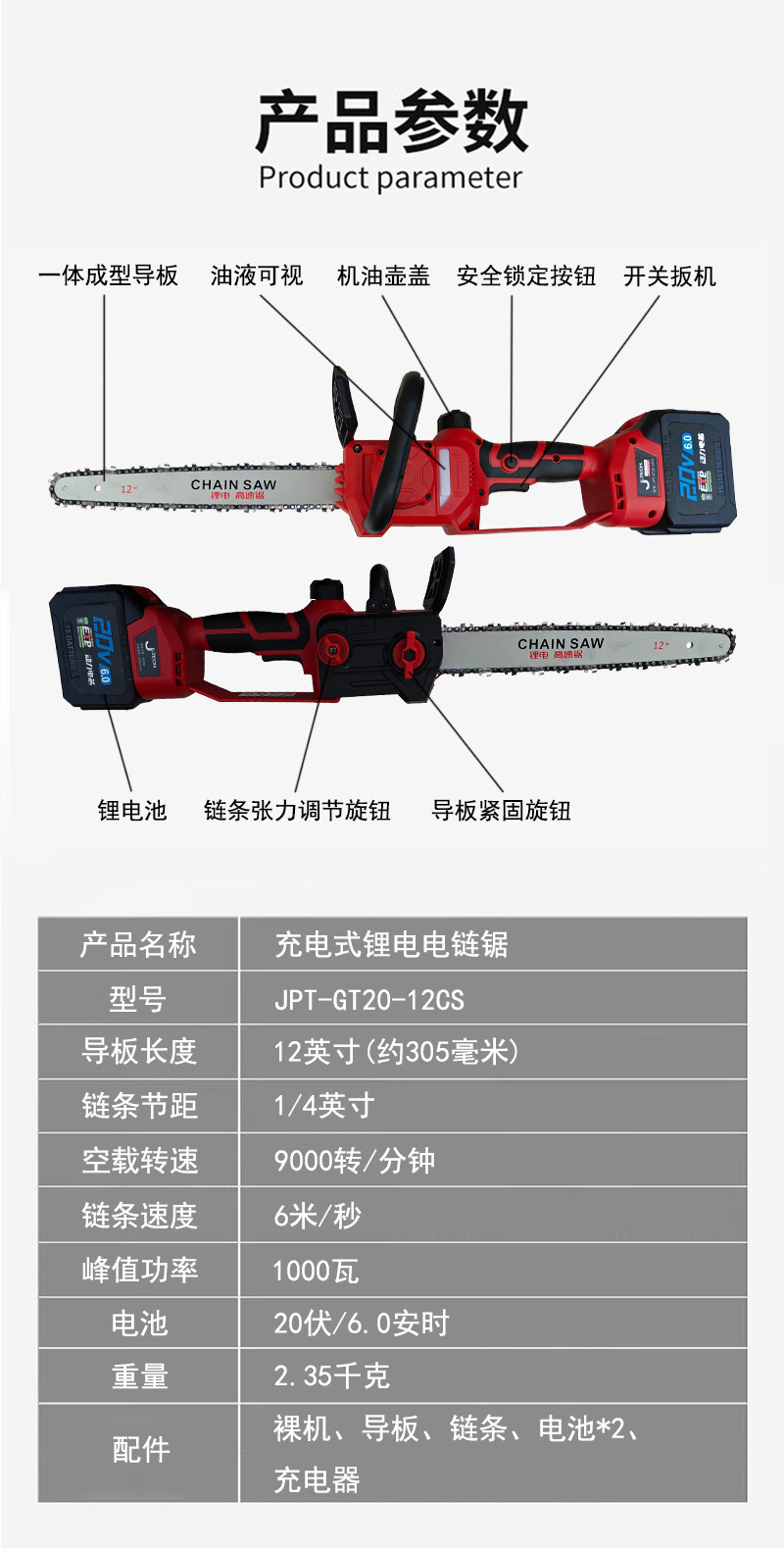 Литиевая электрическая цепная пила JETECH JPT-GT20-12CS