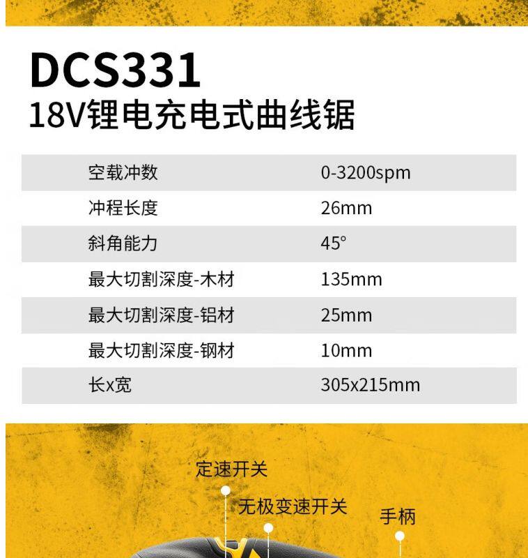 DEWALT 20 В бесщеточный перезаряжаемый лобзик DCS334 вышивка деревообработка DCS331 резка металла по дереву