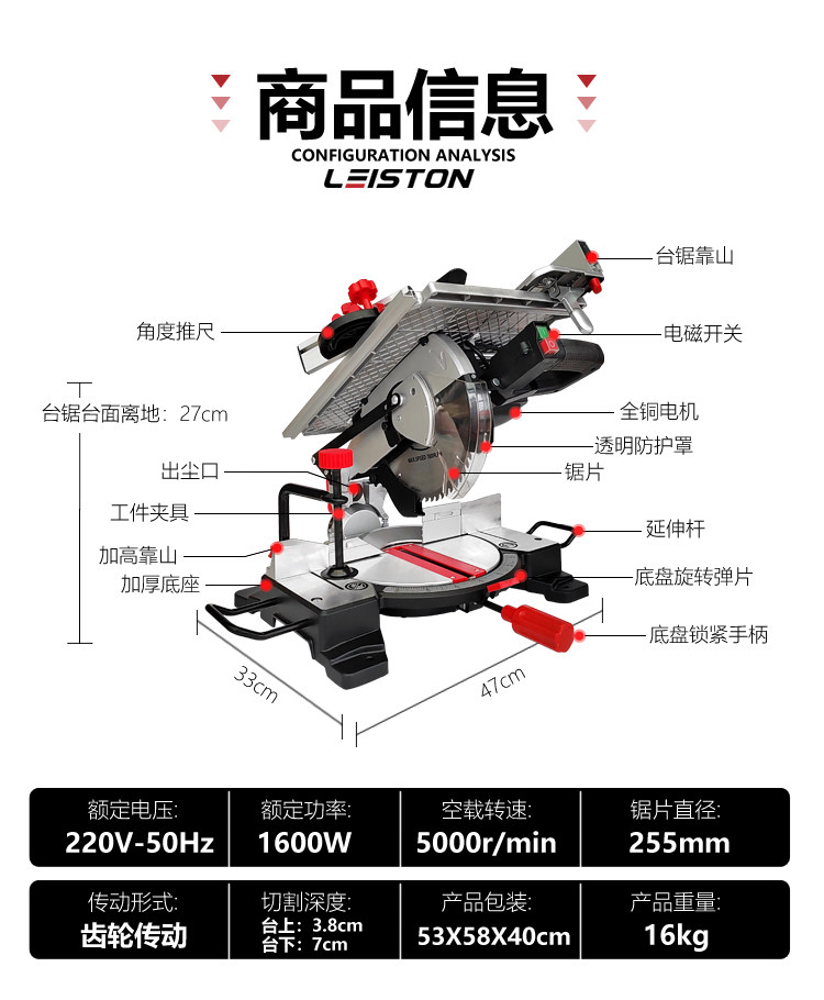 雷世顿 Многофункциональная деревообрабатывающая композитная пила. Небольшая настольная настольная резка двух -пилы алюминиевая машина алюминиевая профиль 45 градусов угол разреза