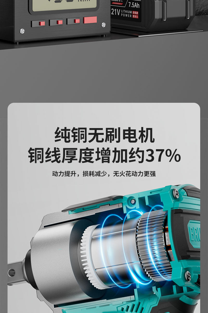 Бесколлекторный электрический гаечный ключ с зарядкой, универсальная батарея