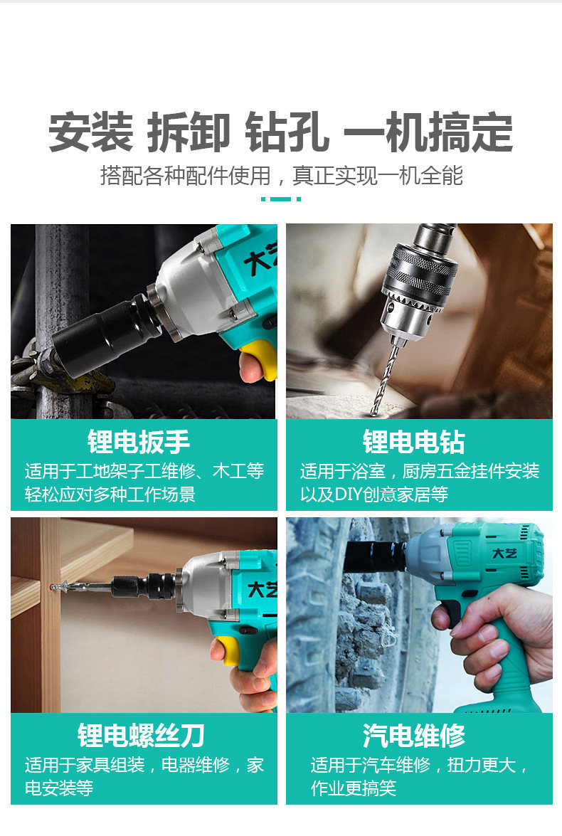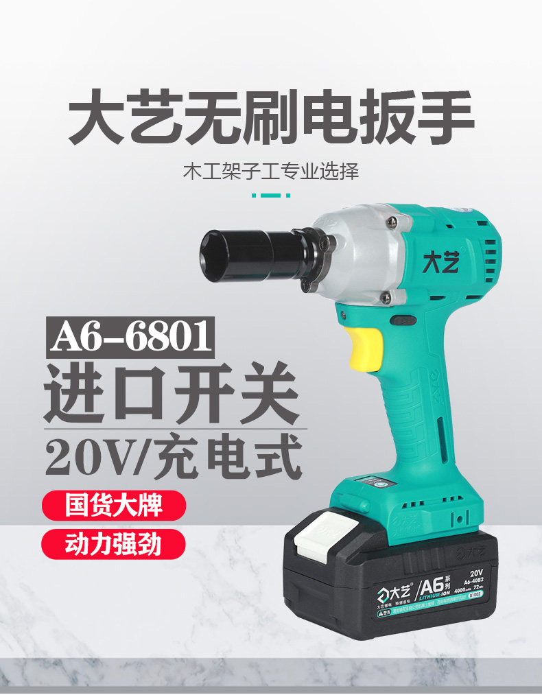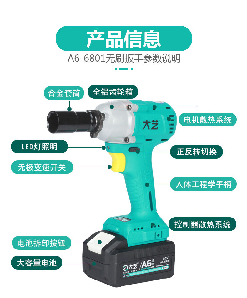 大艺 Электрический гаечный ключ, бесколлекторные электрические литиевые батарейки, фонарь, отвертка