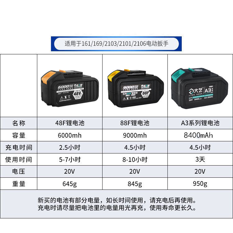 大艺 Электрический гаечный ключ, фонарь, оригинальная батарея, универсальные литиевые батарейки, 48v