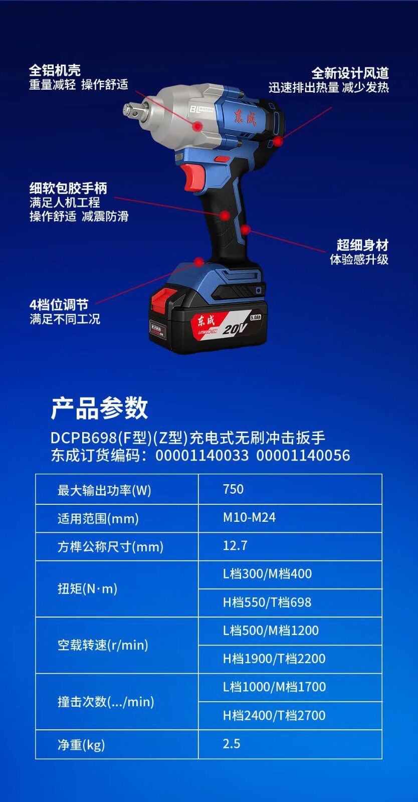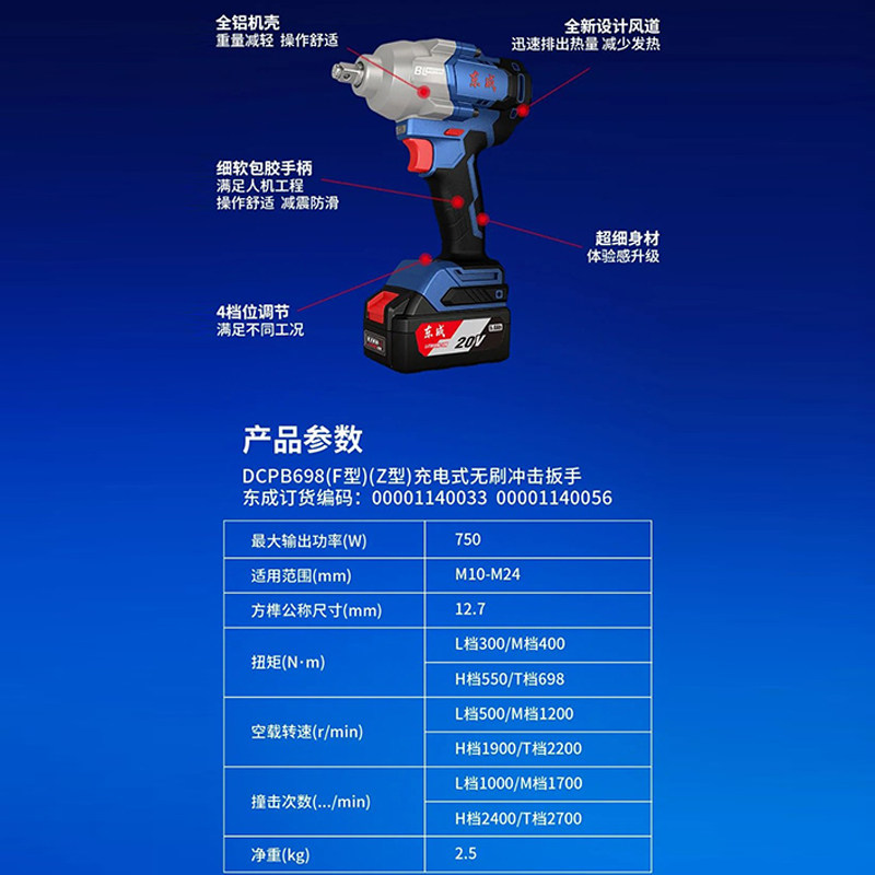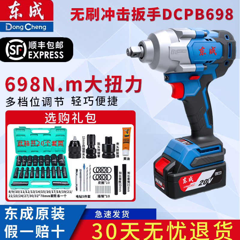 东成 20 В перезаряжаемый ударный гайковерт DCPB698 с высоким крутящим моментом 698 Нм авторемонтная стойка рабочий электрический пневматический гаечный ключ