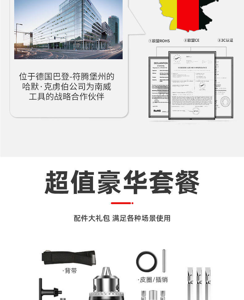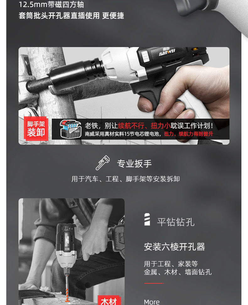 Электрические бесколлекторные литиевые батарейки, гаечный ключ, фонарь, столярные изделия, электродрель