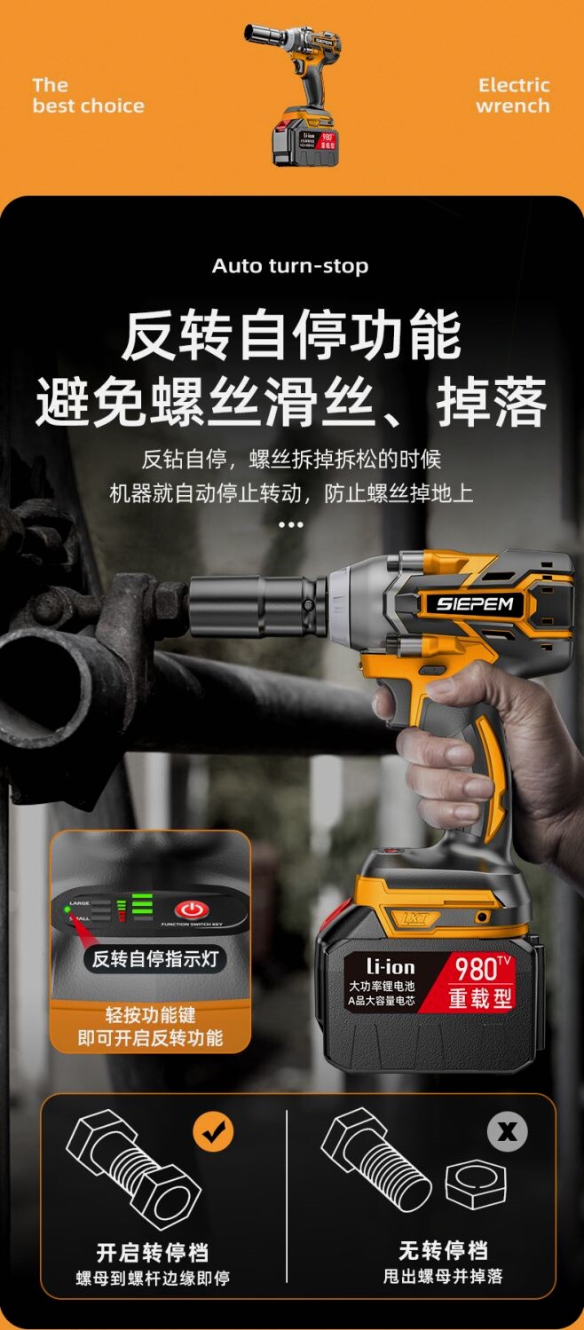Импортный бесколлекторный электрический гаечный ключ, литиевые батарейки, Германия
