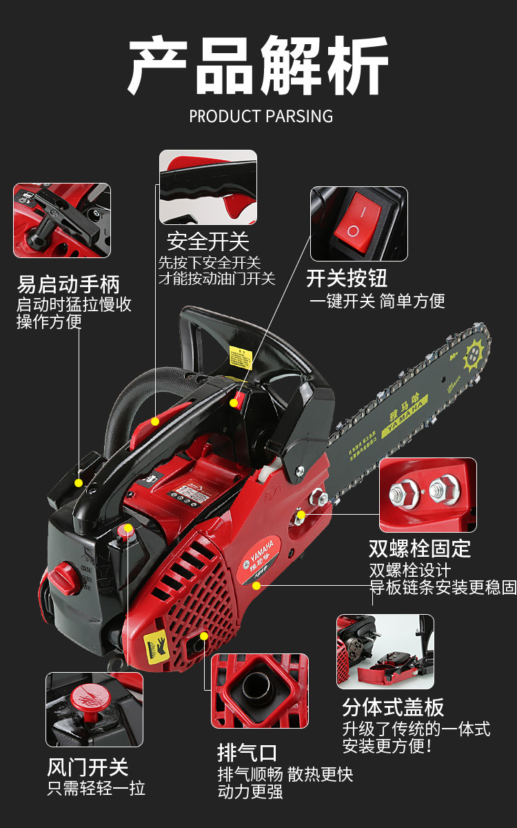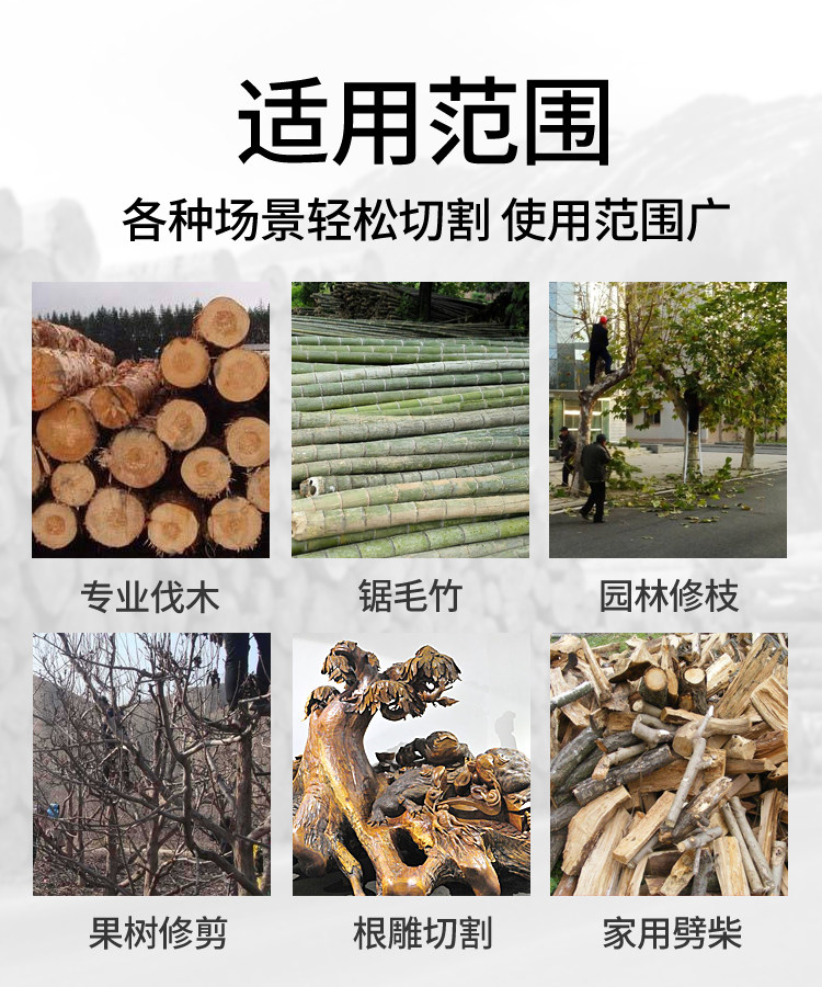 Небольшая лесозаготовительная пила высокой конфигурации, пила для бамбука moso, с гарантированным качеством, высокой скоростью и высокой мощностью. Он может рубить деревья диаметром около 40 см. Гарантия на двигатель составляет пять лет. Его мощности достаточно для бытовых пил и обрезки древесины.