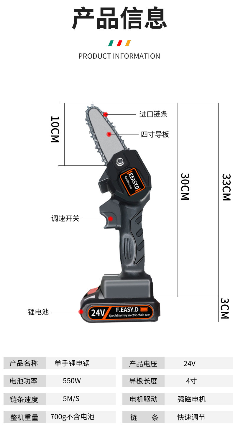 Маленькая бензопила, электрические литиевые батарейки, 4 дюймов