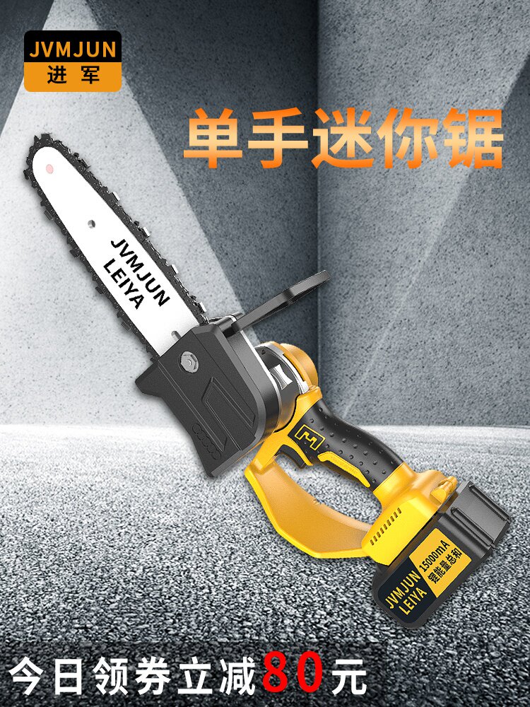 Цепная пила удерживает литий в соответствии с ветвями, однопользовательская зарядная электроэнергия, небольшая электрическая радиосвязь, бензопила, на открытом воздухе