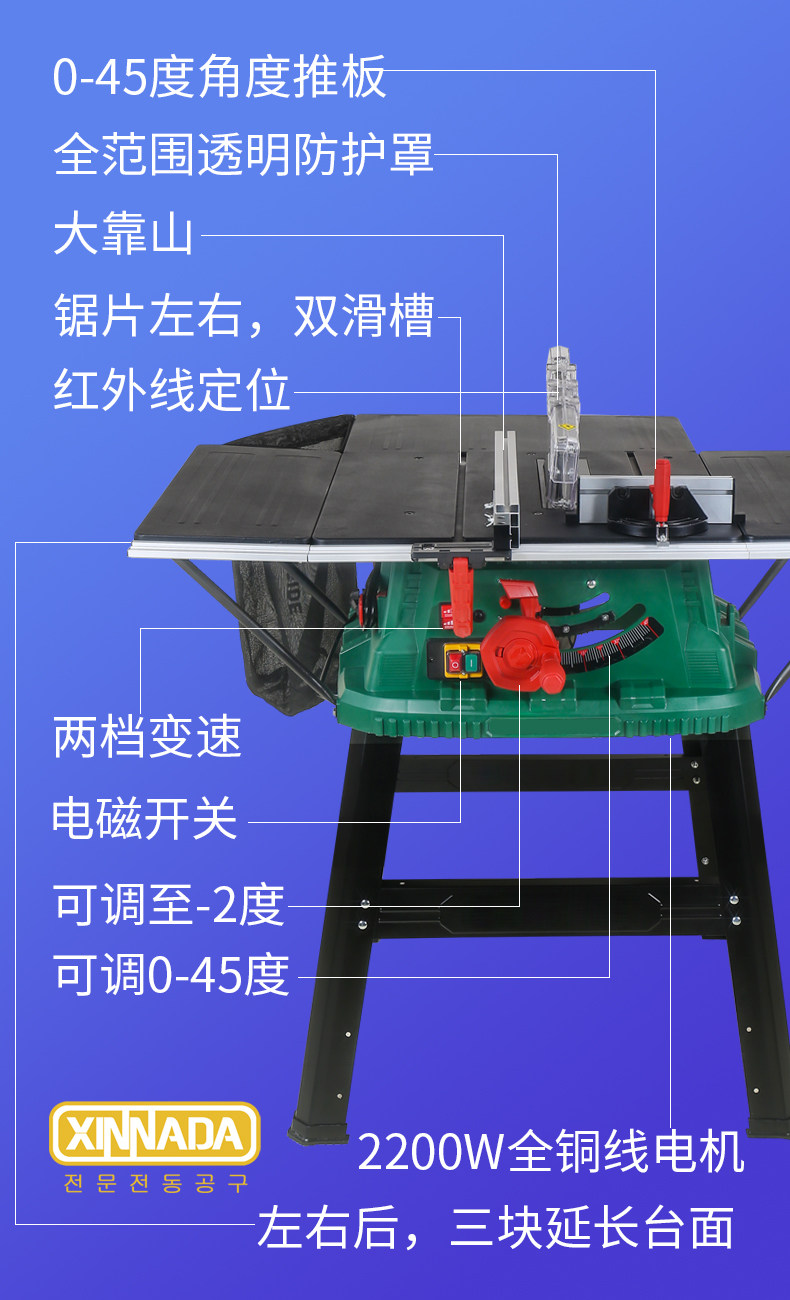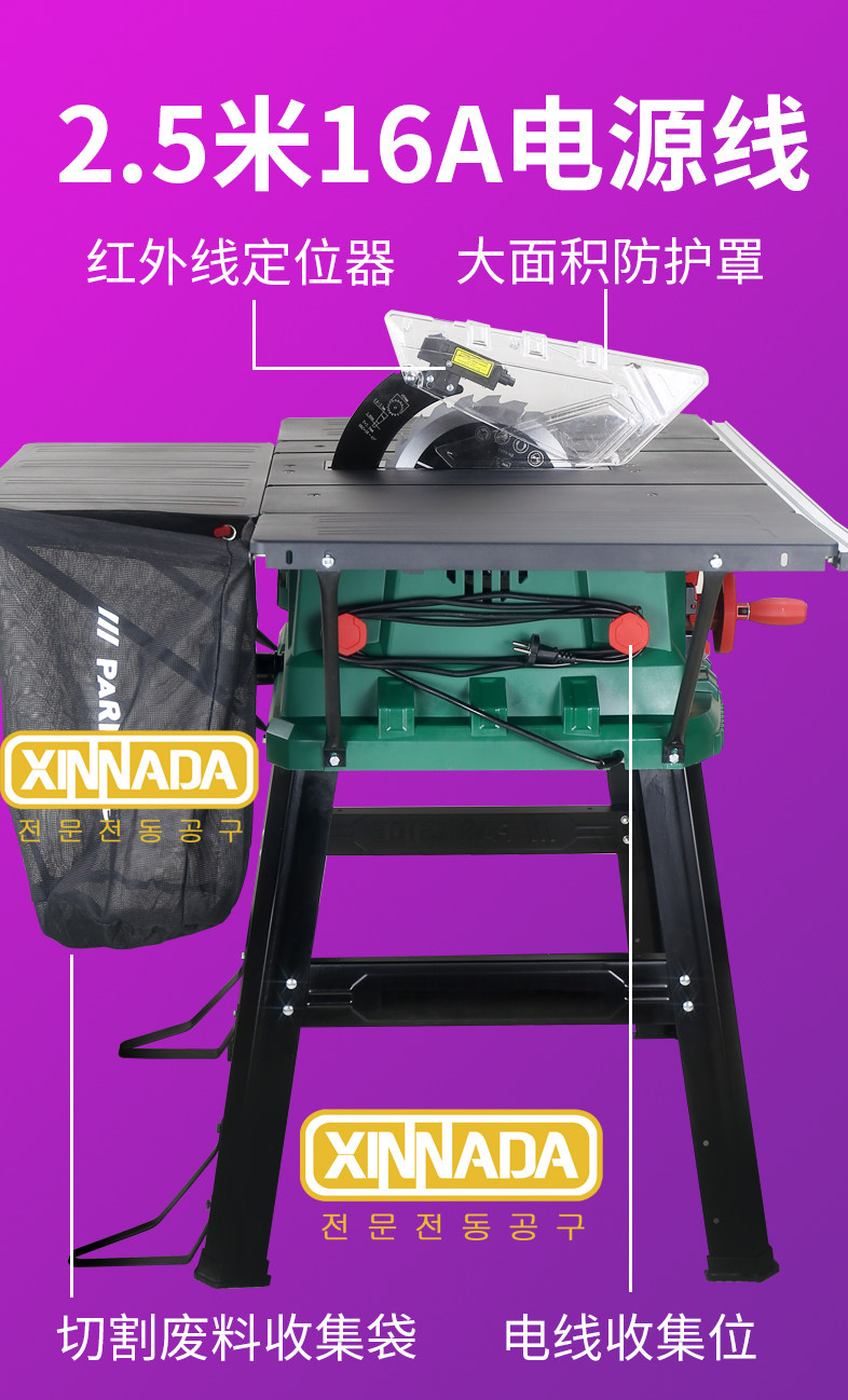 Shin Nada 10 -Icinch Table Saw Perable Homevate Demere Dust Бесплатная режущая таблетка -тип