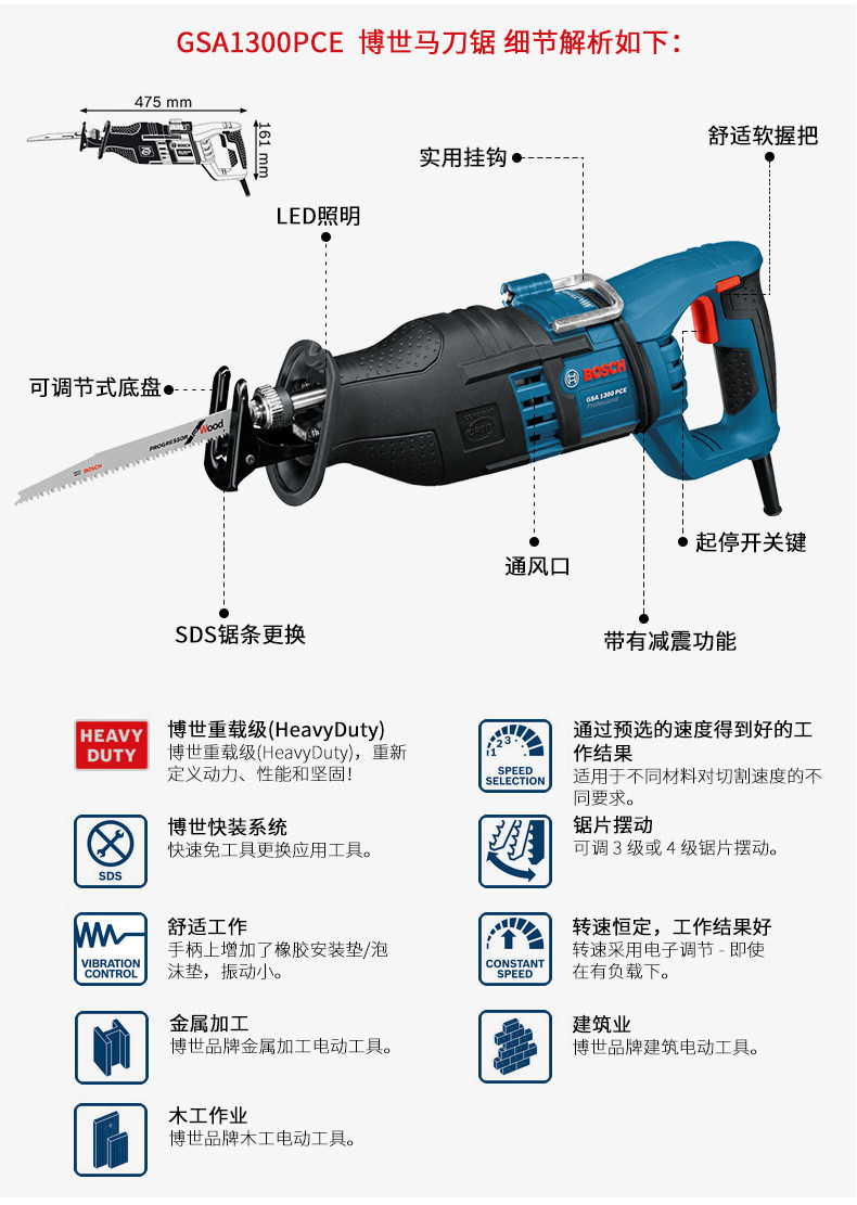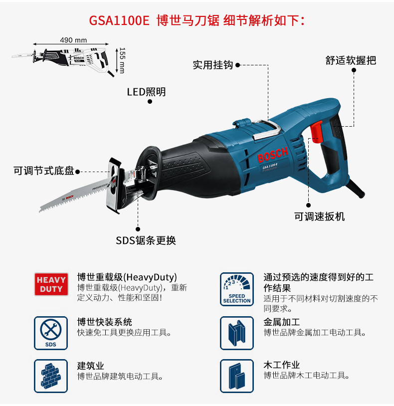 Boschi Speed Horse Swiping Saw, чтобы повторить GSA120/1300PCE/1100E Металлическое дерево