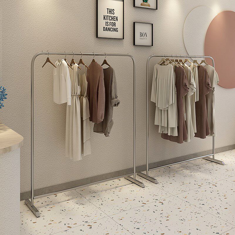Магазин одежды из нержавеющей стали дисплей на стене настенную стену специальную женскую одежду подвесную вешалку с одиночной полки мобильное колесо