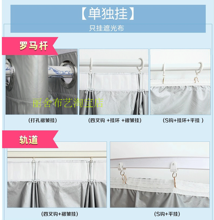 1. Висеть в одиночестве (широкая ткань, четыре крючки с занавесом) Установите занавесные стержни или дорожки.