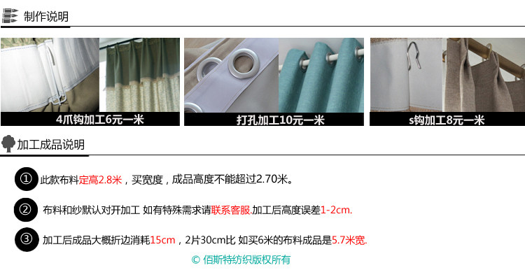 Примечание. Размер готового продукта в опции - это размер, который не содержит складки, например: окна шириной 3 метра должны быть сняты 3 метра шириной*2,7 метра высотой (высота может быть изменена), количество: 2 штуки