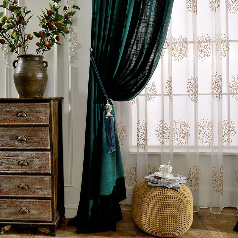 Современная скандинавская зеленая цветная ткань для гостиной, простой и элегантный дизайн, скандинавский стиль, из хлопка и льна