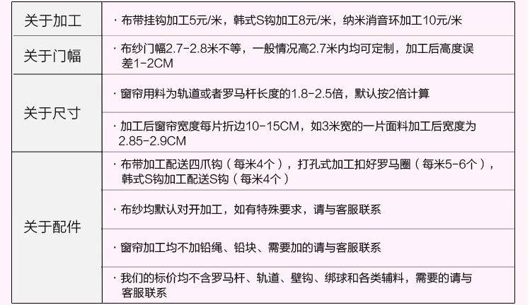 | Размер: | Кусок ткани и пряжи размером 1,5*2,7 метра можно укоротить, пробивая отверстия., Кусок ткани и пряжи размером 2*2,7 метра можно укоротить, пробивая отверстия., Кусок ткани и пряжи размером 2,5*2,7 метра можно укоротить, пробивая отверстия., Кусок ткани и пряжи размером 3*2,7 метра можно укоротить, пробивая отверстия., Кусок ткани и пряжи размером 3,5*2,7 метра можно укоротить, пробивая отверстия., Кусок ткани и пряжи длиной 4*2,7 метра можно укоротить., Кусок ткани 1,5*2,7 метра и крючок для пряжи можно укоротить., Кусок ткани 2*2,7 метра и крючок для пряжи можно укоротить., Кусок ткани 2,5*2,7 метра и крючок для пряжи можно укоротить., Кусок ткани 3*2,7 метра и крючок для пряжи можно укоротить., Кусок ткани 3,5*2,7 метра и крючок для пряжи можно укоротить., Кусок ткани 4*2,7 метра и крючок для пряжи можно укоротить., Если вам нужен размер, пожалуйста, настройте размер или сократите его и оставьте сообщение., Один метр ткани без ткани 24,98., Занавеска для штор 50,80 юаней за метр. |