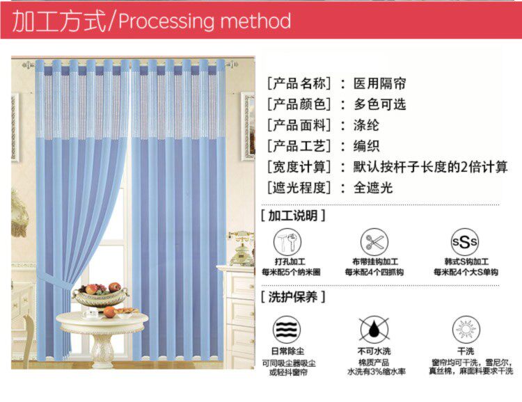 【Спецификация】:Высота медицинского занавеса составляет около 2,8 метра, а ткань обычно составляет 60-80 метров.