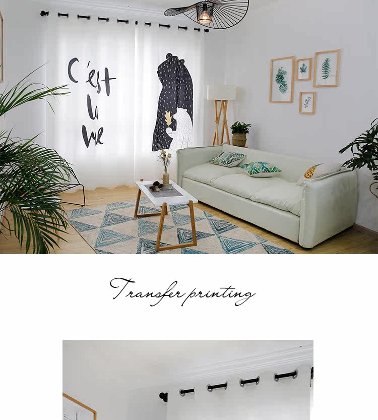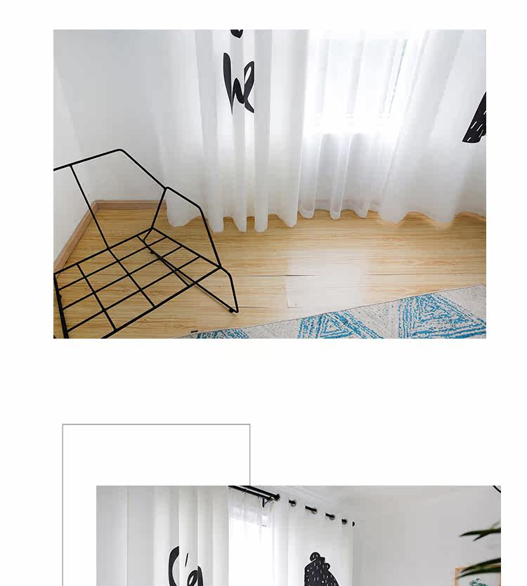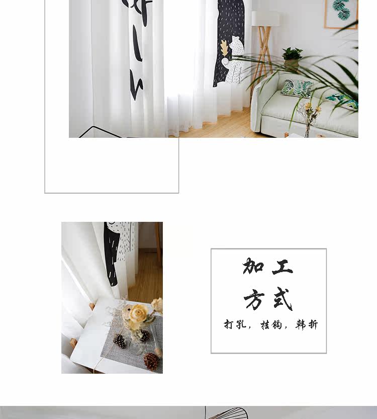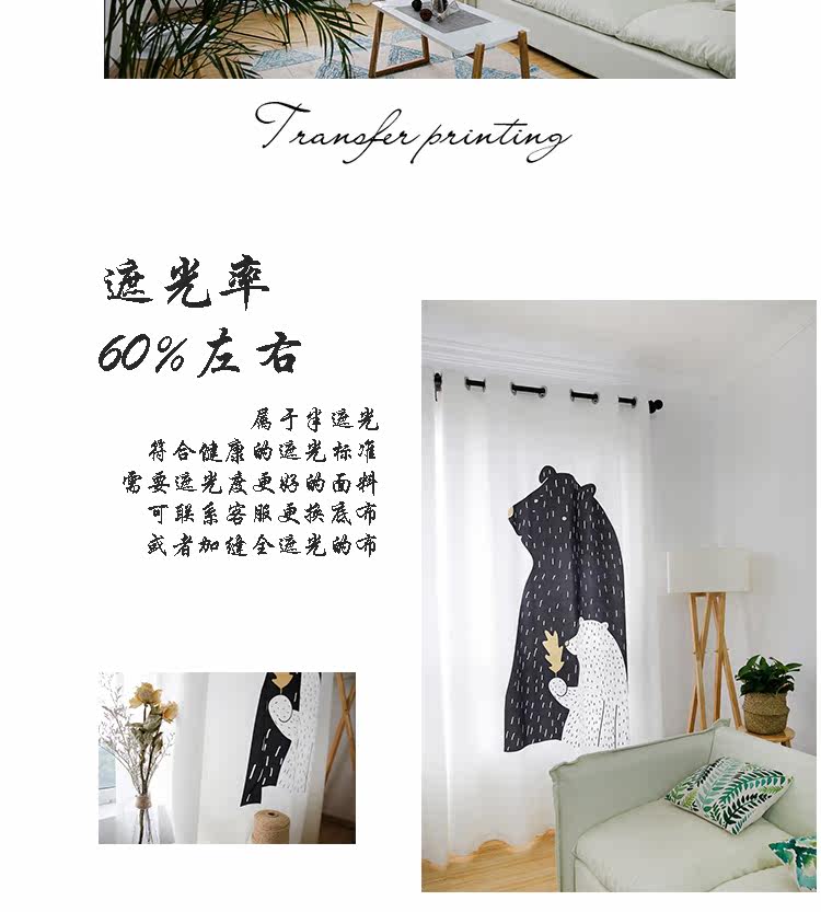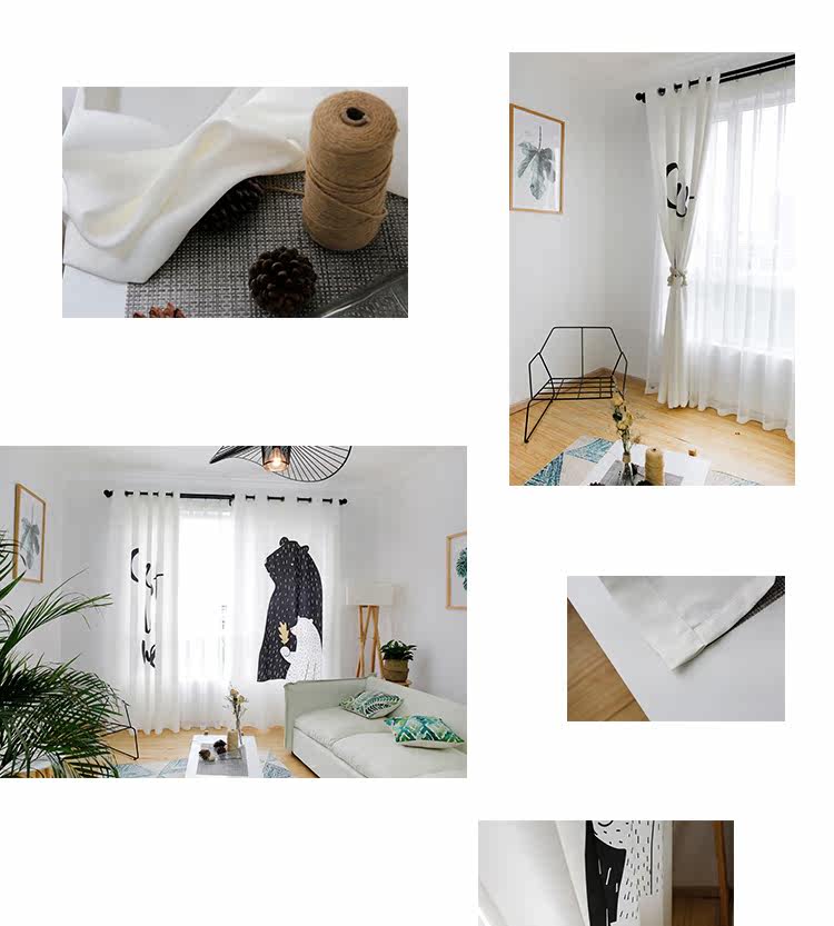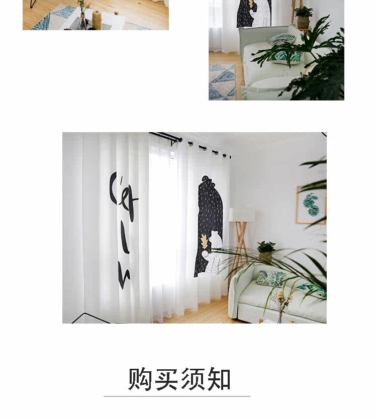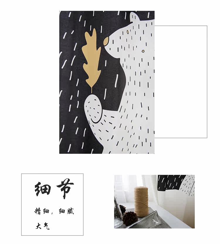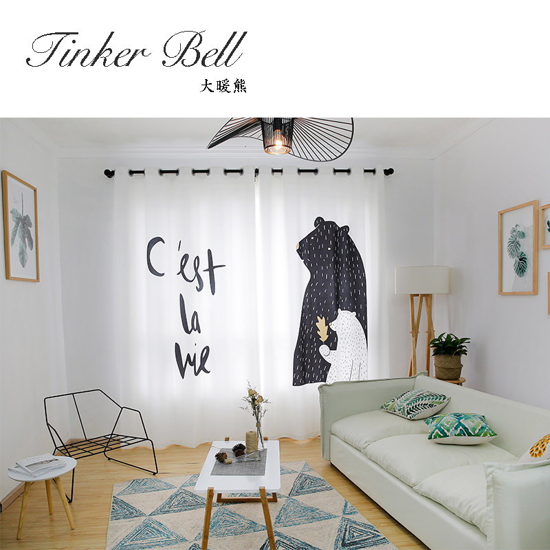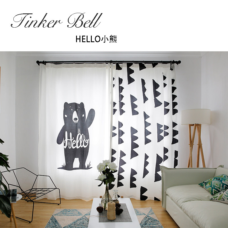 Маленький медведь Черно -белая гостиная скандинавская занавеса детская комната мультфильм спальня для спальни бухто118.00118.00